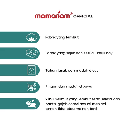 Direka khas dengan corak gajah comel π yang menenangkan & fabrik lembut yang sesuai untuk kulit bayi yang sensitif.