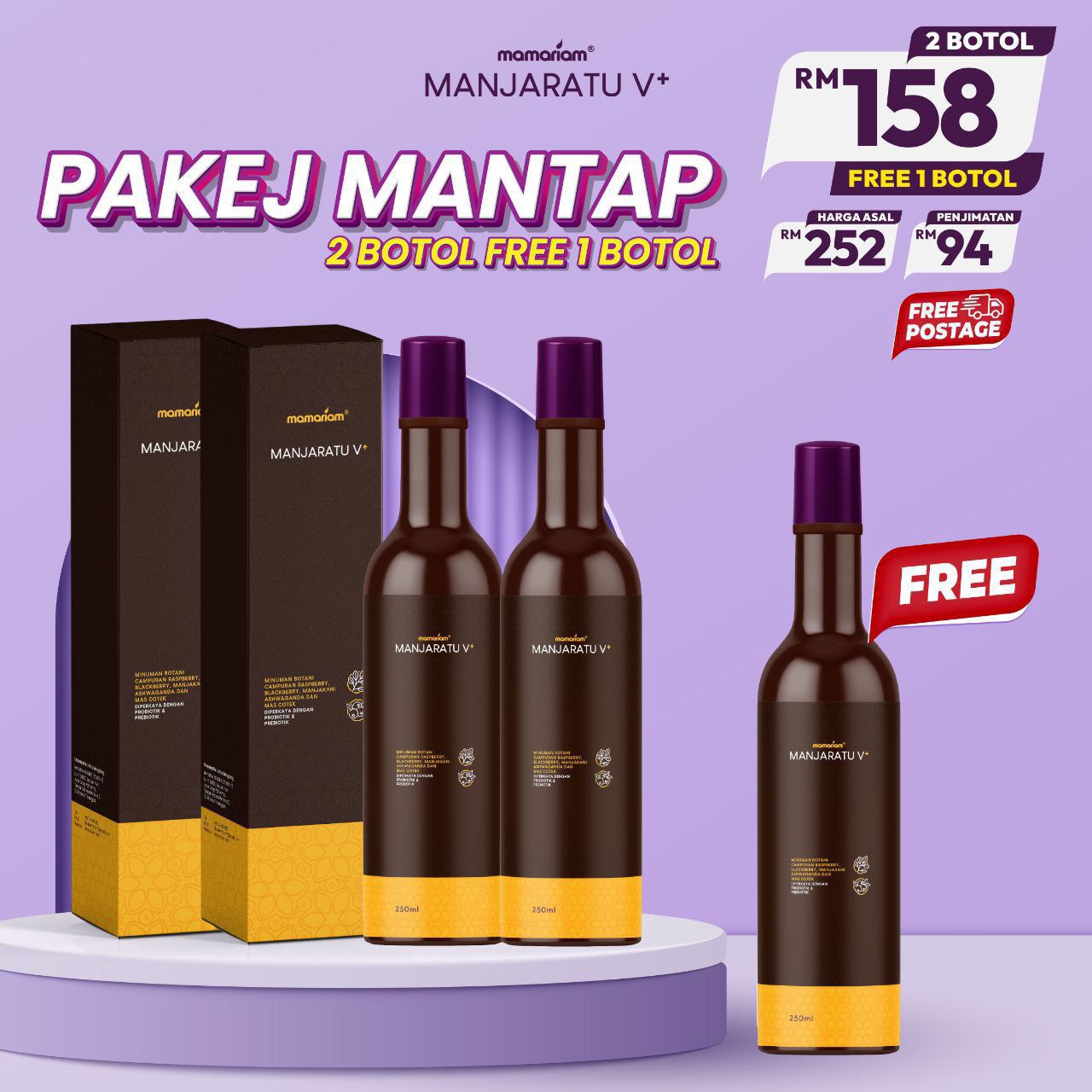 MAMARIAM Manjaratu V+ menggabungkan campuran mixberry, serapat, manjakani, ashwagandha & mas cotek, diperkaya dengan probiotik & prebiotik untuk penjagaan menyeluruh dari dalam hingga luaran 💕