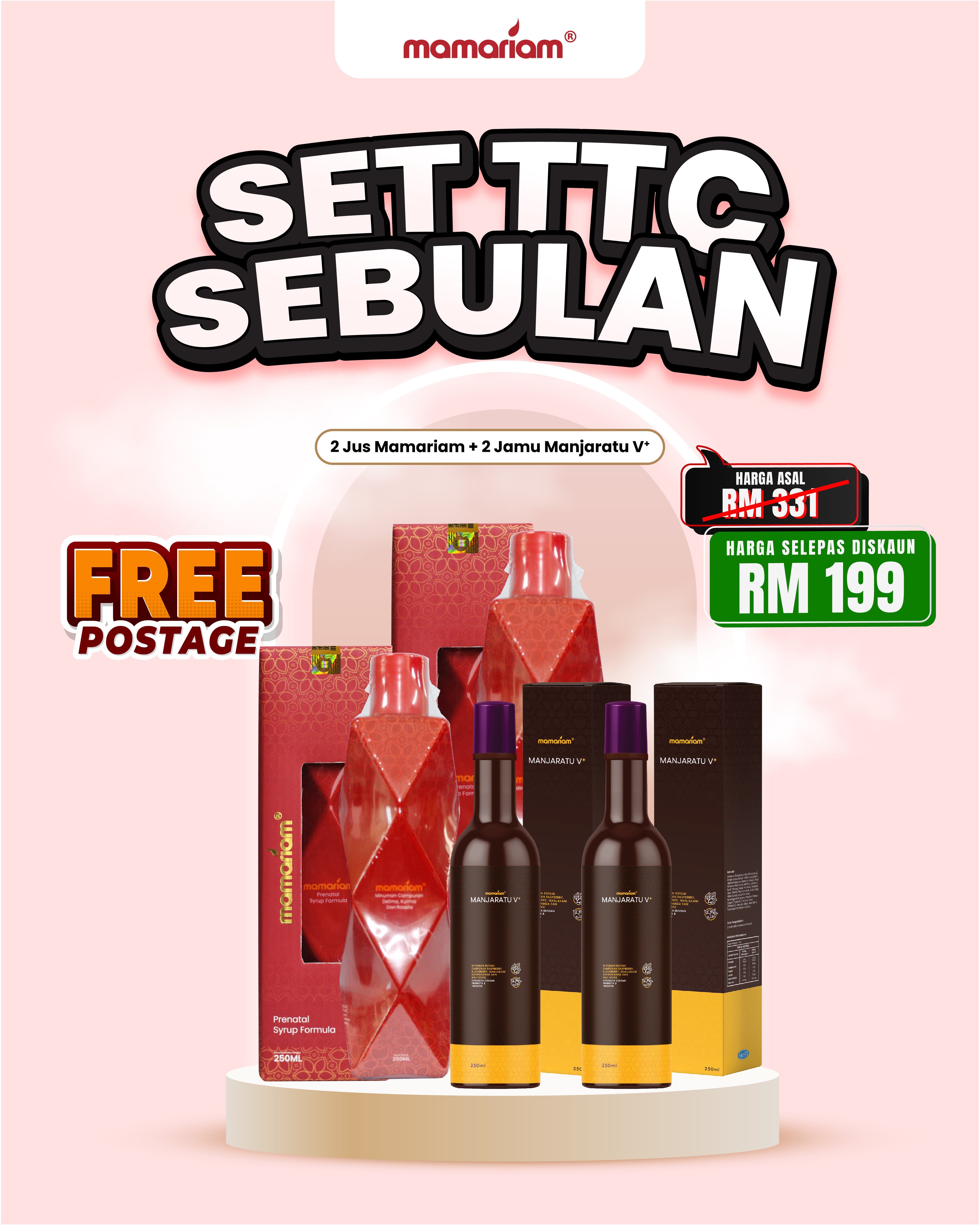 🥤 Jus Mamariam sebenarnya selamat untuk ibu hamil, namun dalam pakej ini ia digabungkan bersama Manjaratu sebagai sokongan nutrisi untuk wanita yang belum hamil dan sedang ikhtiar hamil.
